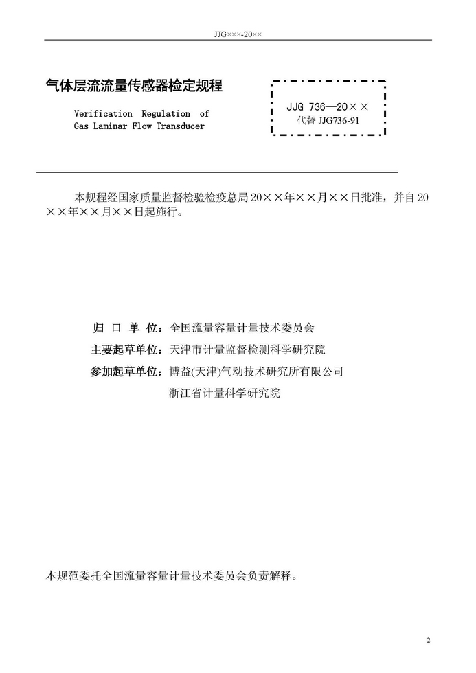 《氣體層流流量傳感器檢定規程》JJG7 36- 20XX
