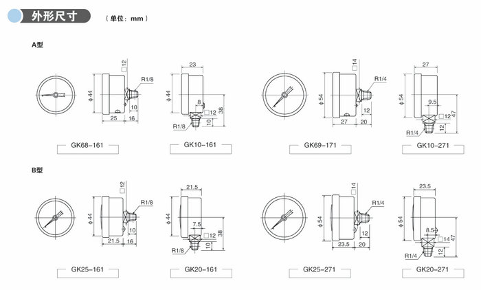 這是一款小型氣動設備用壓力表,可使整個設備的結構更為緊湊。