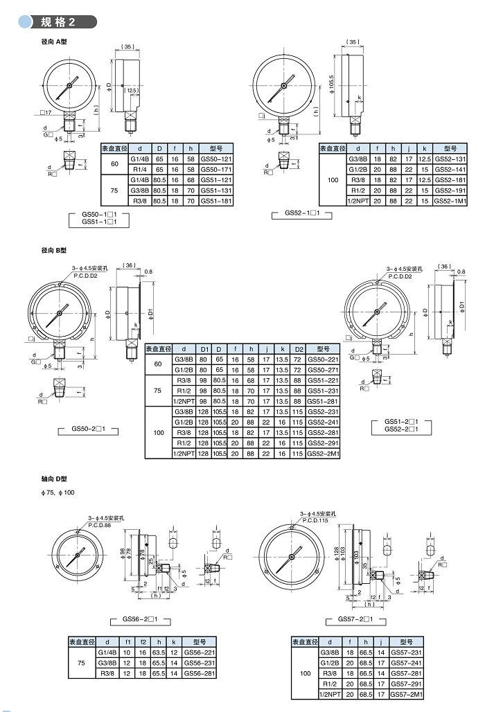 本產品符合日本工業(JIS)標準,是一款性價比高,用途廣泛的壓力表。