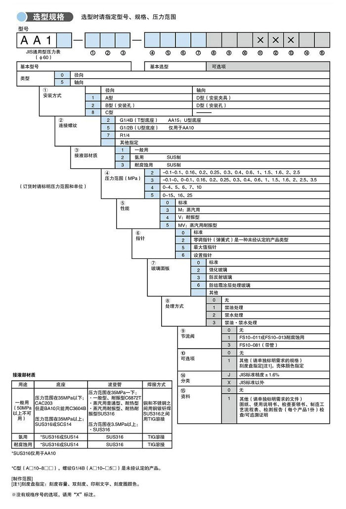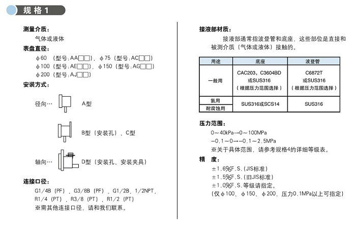 本產品符合日本工業(JIS)標準,作為一般壓力表使用。