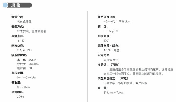 這種差壓表主要用于測量4KPa以下的微差壓??梢园褱y量值轉換為各種單位,能用于液位和流量的測量。