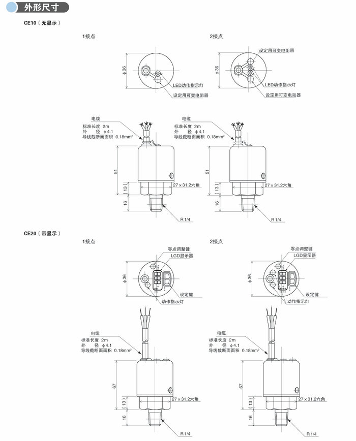 不需提供壓力,直接通過LCD 顯示的數值即可進行壓力設定,使用方便(CE20)